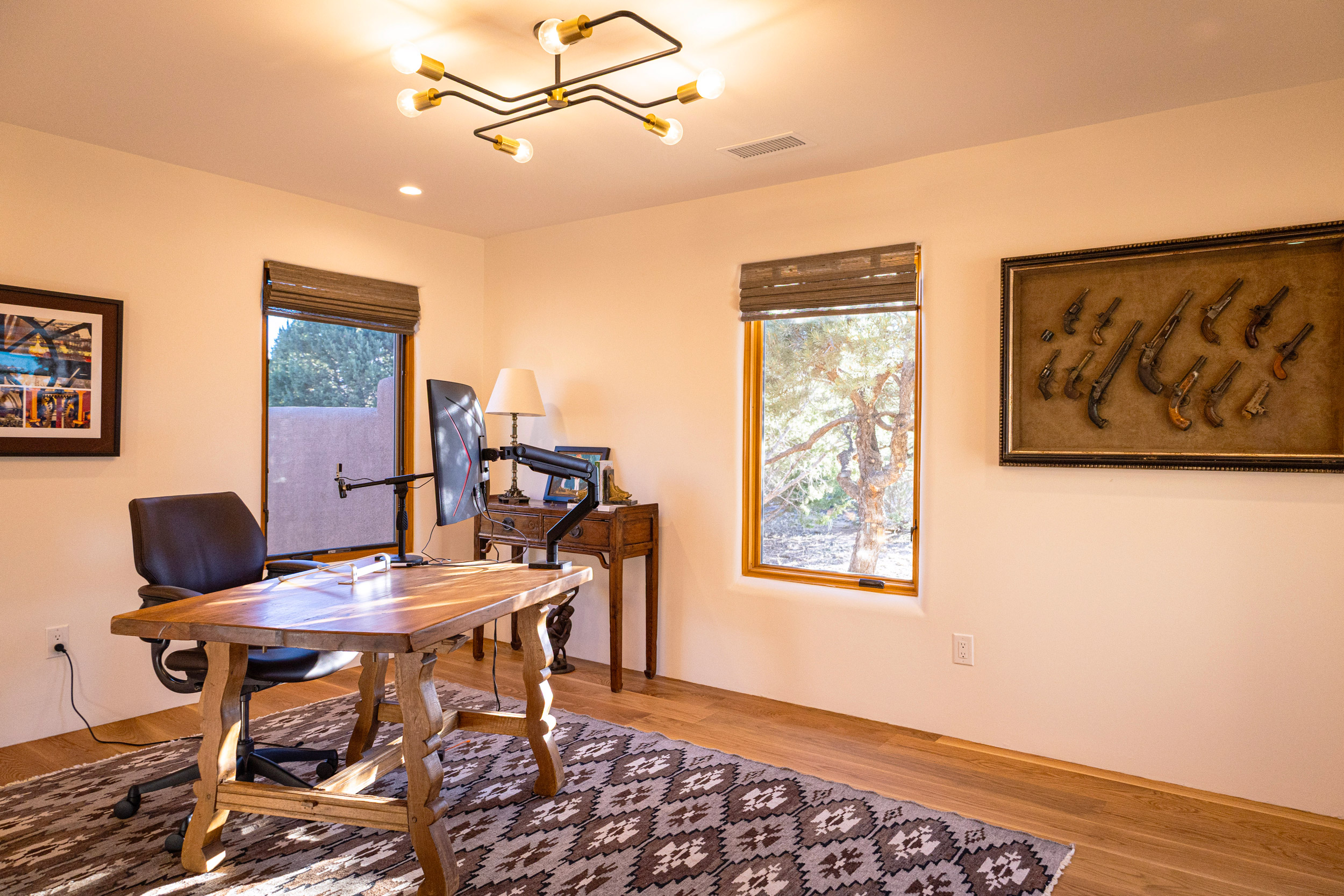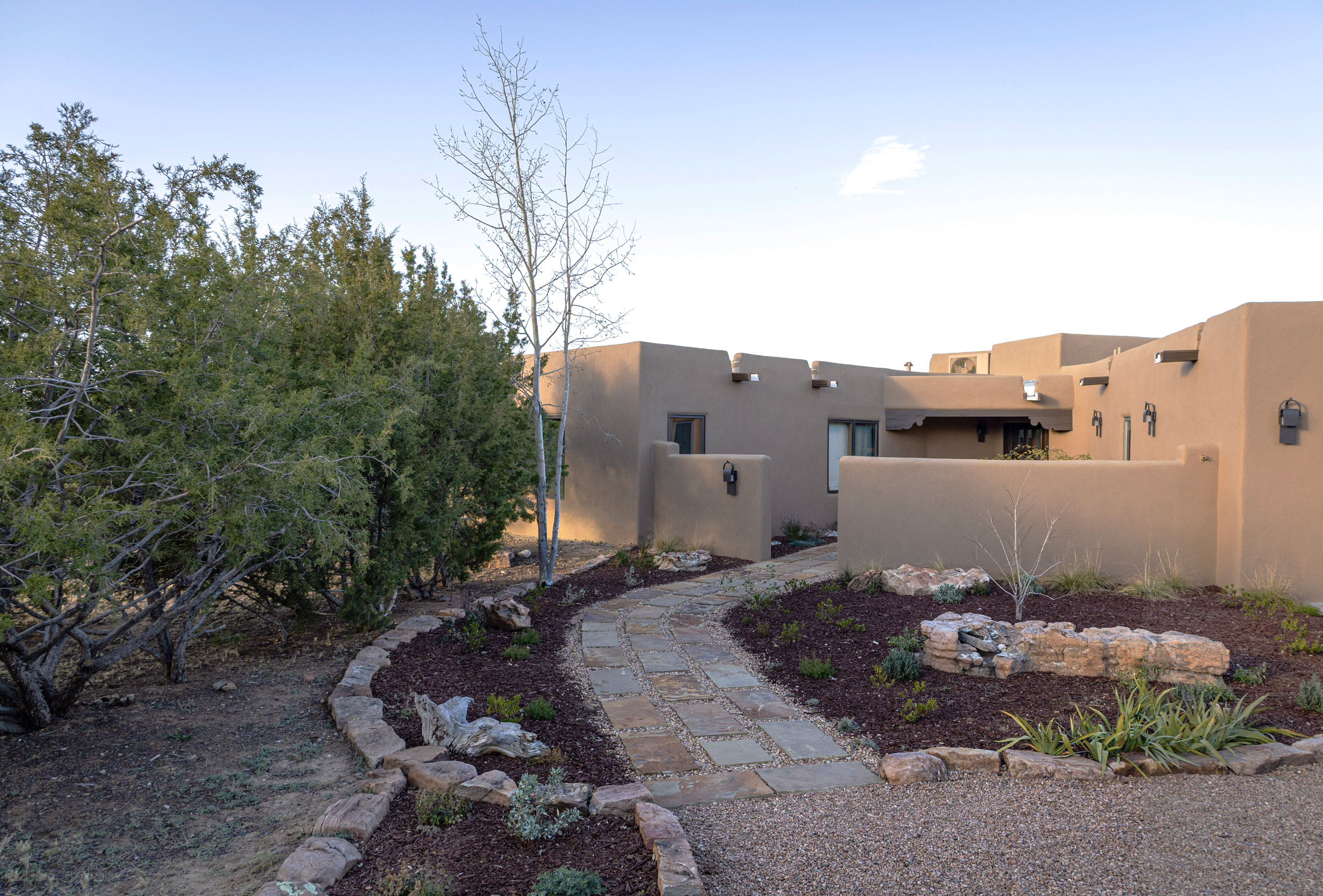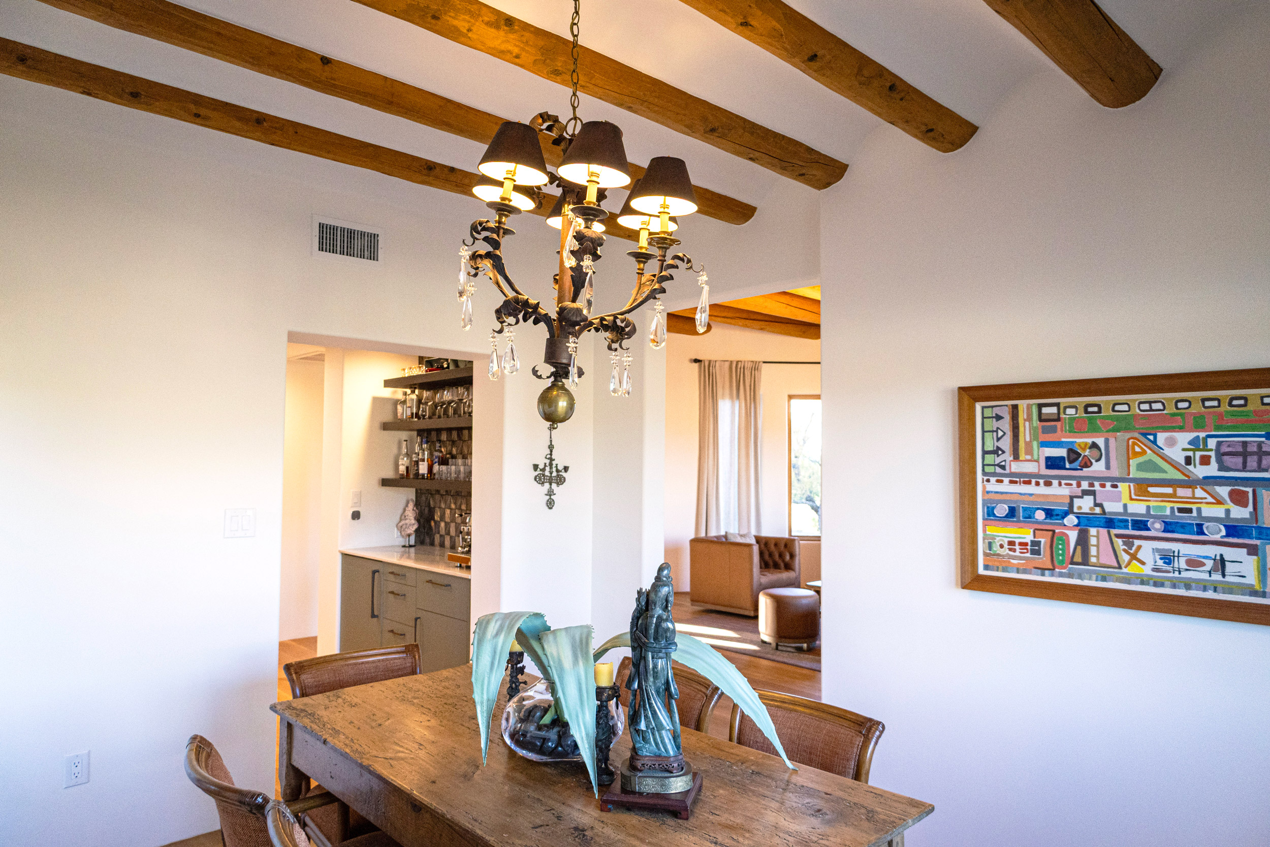 From the kitchen to the baths, every surface was reimagined with intention—melding craftsmanship with livability. Handmade tiles, natural finishes, and carefully selected fixtures elevate the entire home while staying true to its Santa Fe roots.