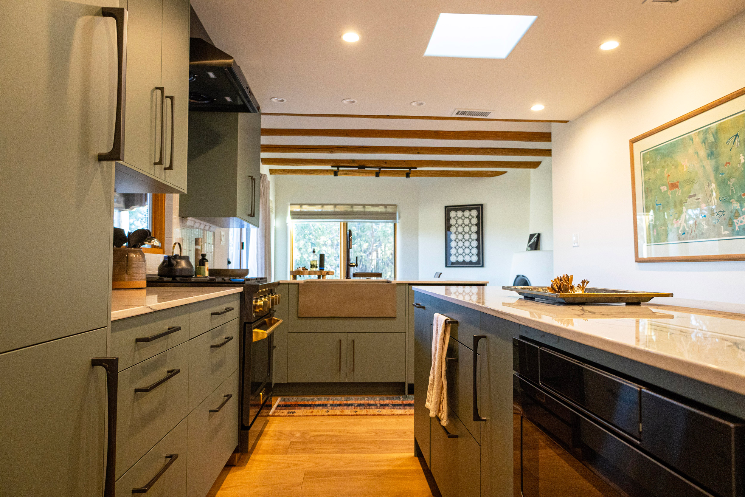 Set against the sweeping views of the Sangre De Cristos, this full-home remodel is a thoughtful revitalization of a classic Santa Fe residence. Blending timeless materials with clean, contemporary lines, the project was designed to breathe new life into a well-loved home—elevating every room while honoring the home’s original character.