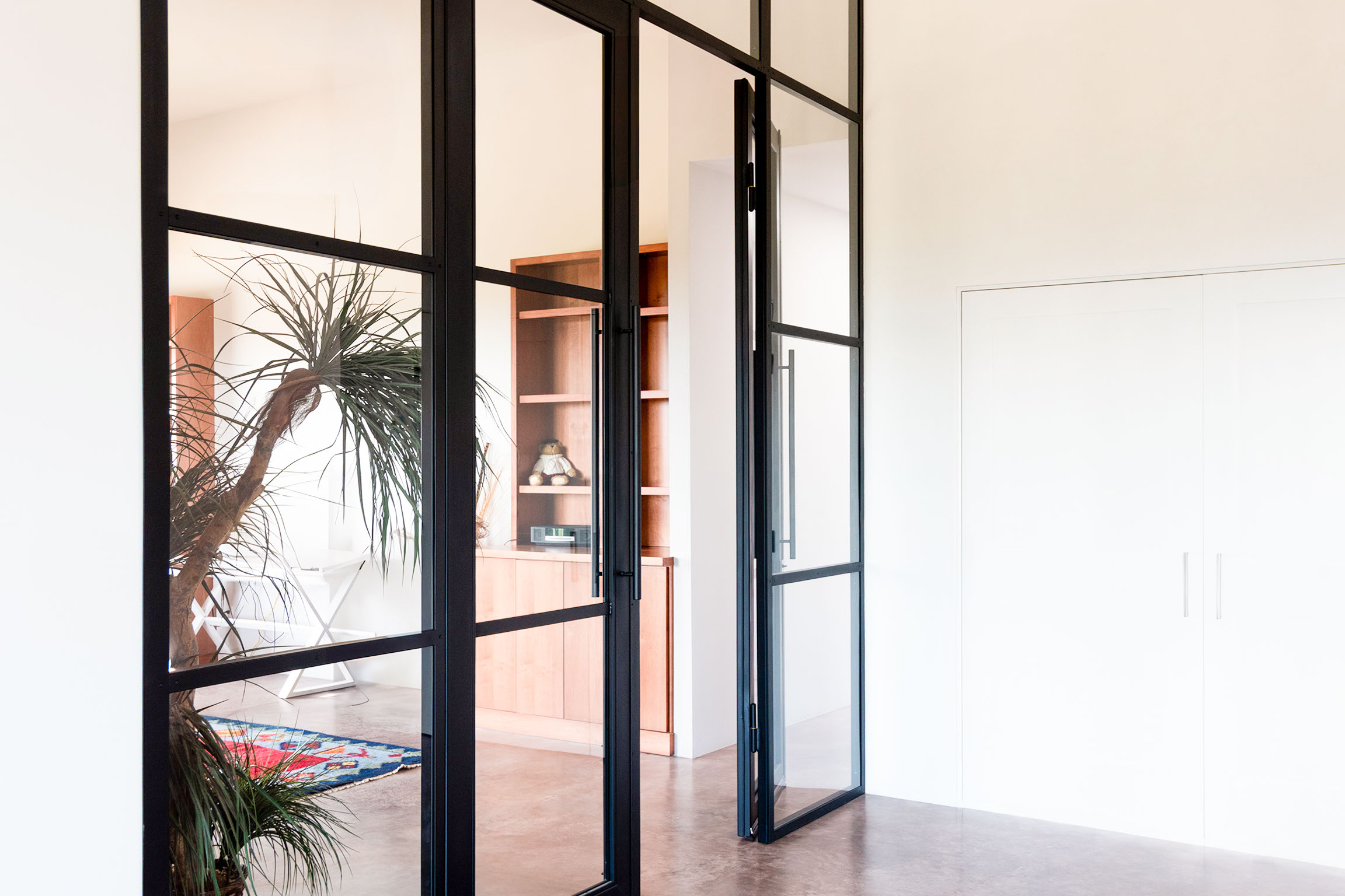 Set in the heart of Santa Fe, this remodel celebrates the intersection of art and architecture. Designed for a home that doubles as a gallery, the project features striking steel and glass partition walls that define space while maintaining visual flow. Floating steel shelving adds sculptural functionality, while new countertops and a fully reimagined butler’s pantry elevate both form and utility. Custom cabinetry brings a tailored touch to each room, and throughout the home, smooth Variance plaster wall treatments provide a soft, luminous backdrop that complements the client’s modern art collection.