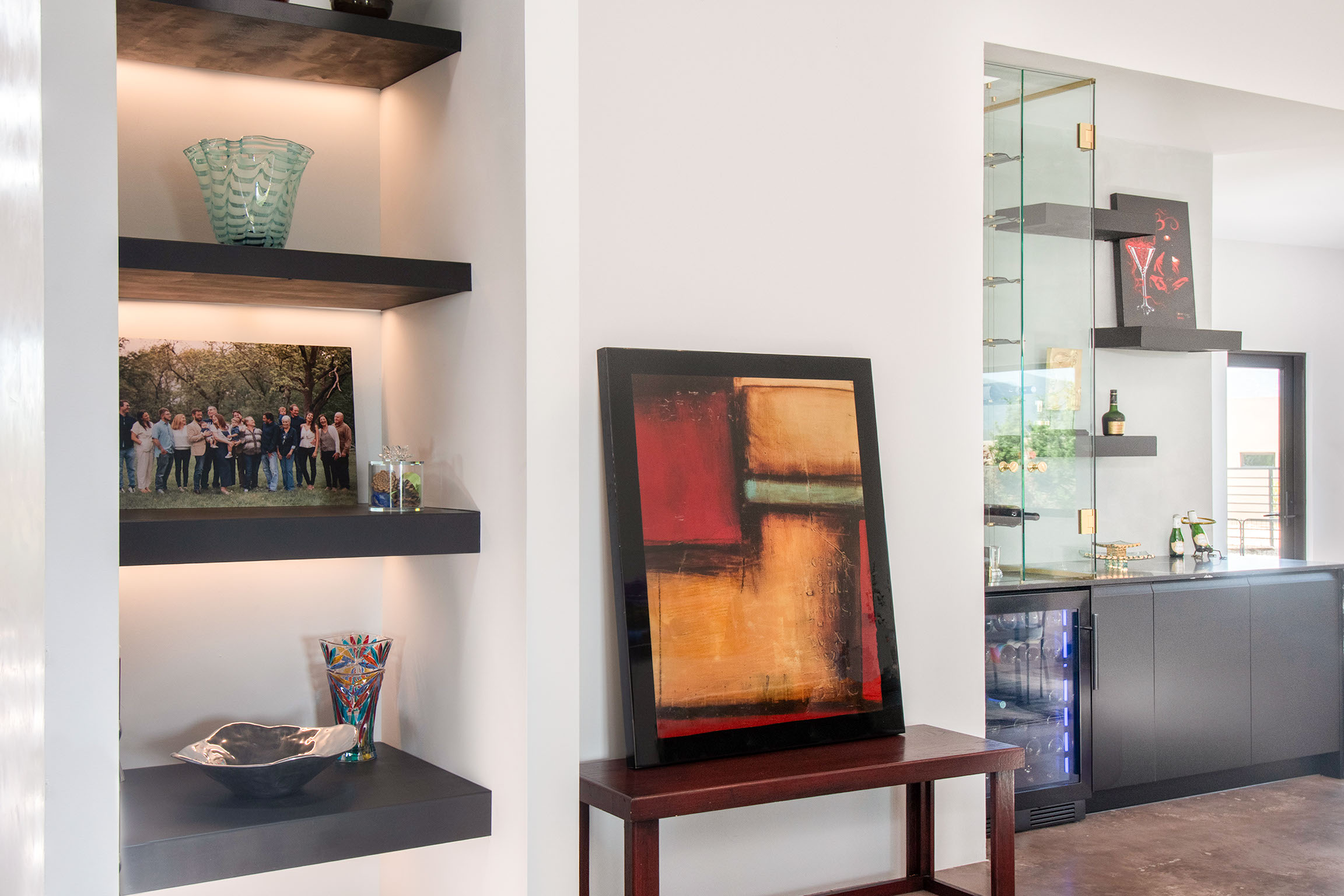 This Santa Fe remodel transforms a private residence into a refined, gallery-like space where modern craftsmanship and artful design come together seamlessly.